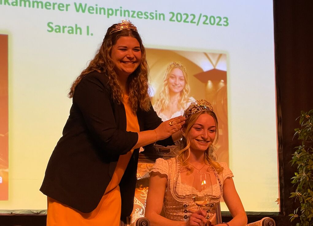 Die Krönung der neuen Maikammerer Weinprinzessin Sarah I. wurde von der Pfälzischen Weinkönigin Sophia Hanke durchgeführt. Auch sie wünschte Sarah viele interessante Termine und Eindrücke rund um den Pfälzer Wein.